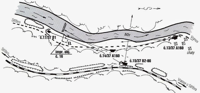 Kulomet umístěný ve strojovně, dnes již neexistující vodní elektrárny, měl pokrýt rozsáhlý mrtvý prostor před haldami. Na obrázku 250 je současný stav okolí bývalé elektrárny, dnes natolik zarostlé, že místo objektu nelze ani vyfotit ze stejného úhlu (elektrárna stála vpravo od betonových kvádrů).