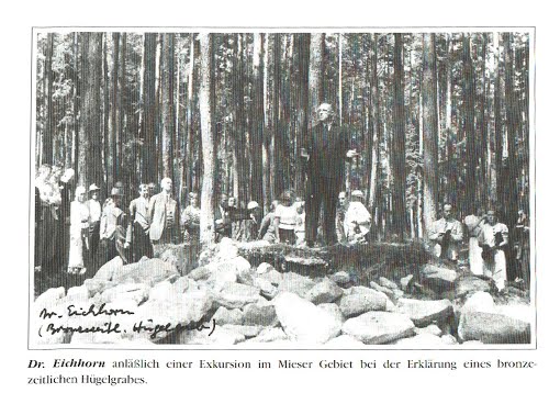 Naproti bezpochyby výjimečné a nadmíru oceňované osobnosti Antona Gnirse stojí zdánlivě méně výrazná osobnost učitele Otty Eichhorna, který v době 30. let působil na Stříbrsku. Ve srovnání s Gnirsem se však zaměřoval na systematický výzkum stříbrského regionu a výhradně na jeho pravěké památky, především na mohylová pohřebiště. Eichhorn byl i pravděpodobně v oboru pravěké archeologie vysokoškolsky vzdělán, neboť v úvodu své publikace Ausgrabungen des Museums der Stadt Mies von 1933 bis 1936 zmiňuje, že si je vědom potřeby archeologického vzdělání nutného k provádění archeologických výzkumů a tudíž se rozhodl dohonit své vzdělání studiem prehistorie na univerzitě ve Vídni (Eichhorn 1937a). Není však zcela jasné, kdy studium dokončil, nicméně již Gücklhorn se o něm v roce 1936 zmiňuje jako o Dr. Eichhornovi (Gücklhorn 1936, 62) a i sám Eichhorn se píše s doktorským titulem ve výše zmíněné publikaci z roku 1937 shrnující jeho výzkumy. Na tomto místě se však jeví přínosnější prozkoumat jeho četné příspěvky v tehdejších odborných a vlastivědných periodikách, zejména v Sudetě a v Unsere Heimat, ve kterých průběžně o svých výzkumech informuje.