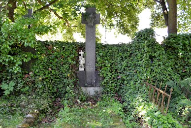 Obě fotografie: stříbrský hřbitov při jižní (dolní) hřbitovní zdi (6.6.2014), před vlastním fotografování bylo nutno pomník alespoň částečně zbavit břečťanu, jímž byl hrob zcela zamaskován.