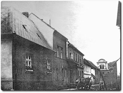 V těchto místech jsme již překročili příčnou ulici Žižkovu a míříme k ulici Plzeňské. Snímek vlevo postrádá jakýkoli časový údaj. Zbývá tedy jen velice volně odhadovat léta třicátá (20.stol.). Barevné foto vzniklo 7.10.2008.