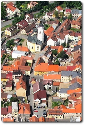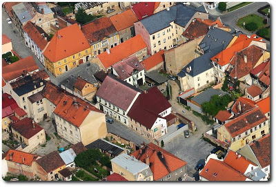 Fotoaparát pracující s barvou a majitelé domů pečující o své nemovitosti - a realita už není tak šedá. Pokud si pak ještě dopřejeme trošku patřičného nadhledu …třebas z kabiny letadla… pak musíme uznat, že ten svět je docela hezký. V našem případě vlevo shlížíme na Kostelní ulici v celé její délce (21.6.2006), vpravo pak máme před sebou (či spíše pod sebou) část téže ulice v prostoru mezi ulicemi Žižkova a Plzeňská (17.7.2005).