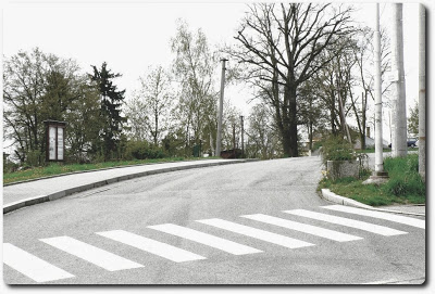 obr.516 (17.8.2008) Přínosem moderní doby je i asfaltový povrch a obrubník. A opět se změnila krytina na boudě vpravo: tašky nahradil vlnitý eternit. Prkenný plot neodolal zubu času (či se snad chystá nějaká rekonstrukce?) Spolu s hrdiny cimrmanovských her si musíme v němém úžasu říci: „Kam ten pokrok spěje, kde se to zastaví?“