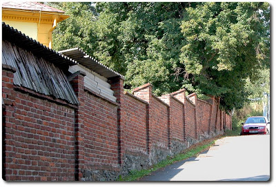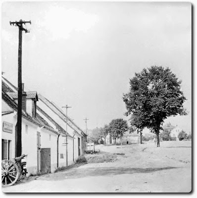 Zeď (dnes pod terasou u Penny) je skoro stejná jako koncem let sedmdesátých (20.stol), jenom se místy poněkud kácí. Přibyly ale jakési přístavby kryté vlnitým eternitem či plechem. Na staré fotce nejsou nejspíš proto, že v té době nebyla tato krytina „momentálně, přechodně či dočasně“ dostupná. Ovšem i silnice již není prašná leč asfaltová. Všude je vidět pokrok.