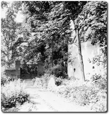 Vrata zahrady u domu čp.527 v Pastýřské ulici v roce 1958. Tatáž partie v dopoledních hodinách dne 20.5.2008.